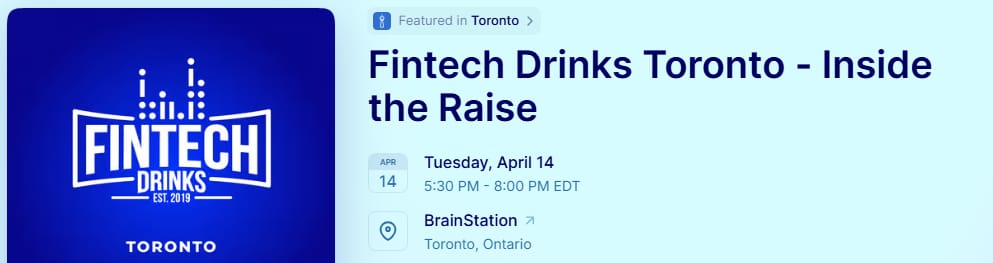 April 15 - Hosted by Zain Abiddin - For fintech folks at Stripe Toronto office