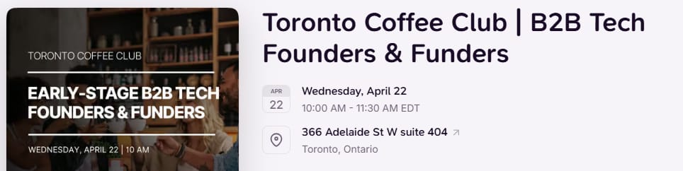 RI.Events, TechTO, FuckupNights Toronto, Founders Poker, TodoToronto, TorontoEventHub, Startup Ecosystem Canada, Ryan Wong, Daivik Goel, Godwin Chan, Aniket Patel (EVP.VC), Clay.com, Kingsong, Toronto Events, Toronto Tech Fest, Forum Ventures, Toronto Tech Basketball Run, AI Tinkeres Toronto, Toronto Tech Week, Women In GTM, Open Sesame, Thenuk De Silva, Maple Leaf Venture Club, TMU Ted Rogers Alumni